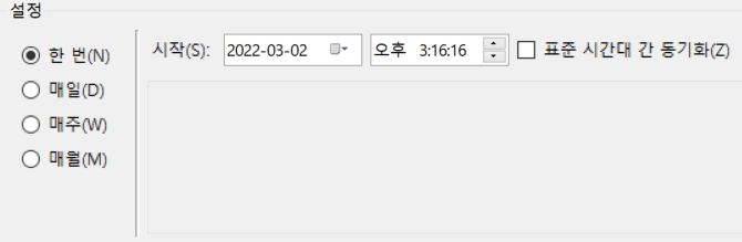 트리거 탭에서는 새로 만들기를 눌러 새 트리거를 만들어주는데 프로그램이 실행될 주기와 시각을 지정합니다.