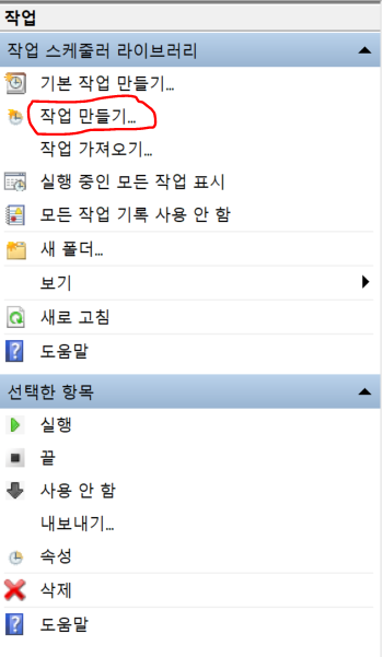 작업 스케줄러를 열었으면 우측에서 작업 만들기를 찾아 클릭합니다.