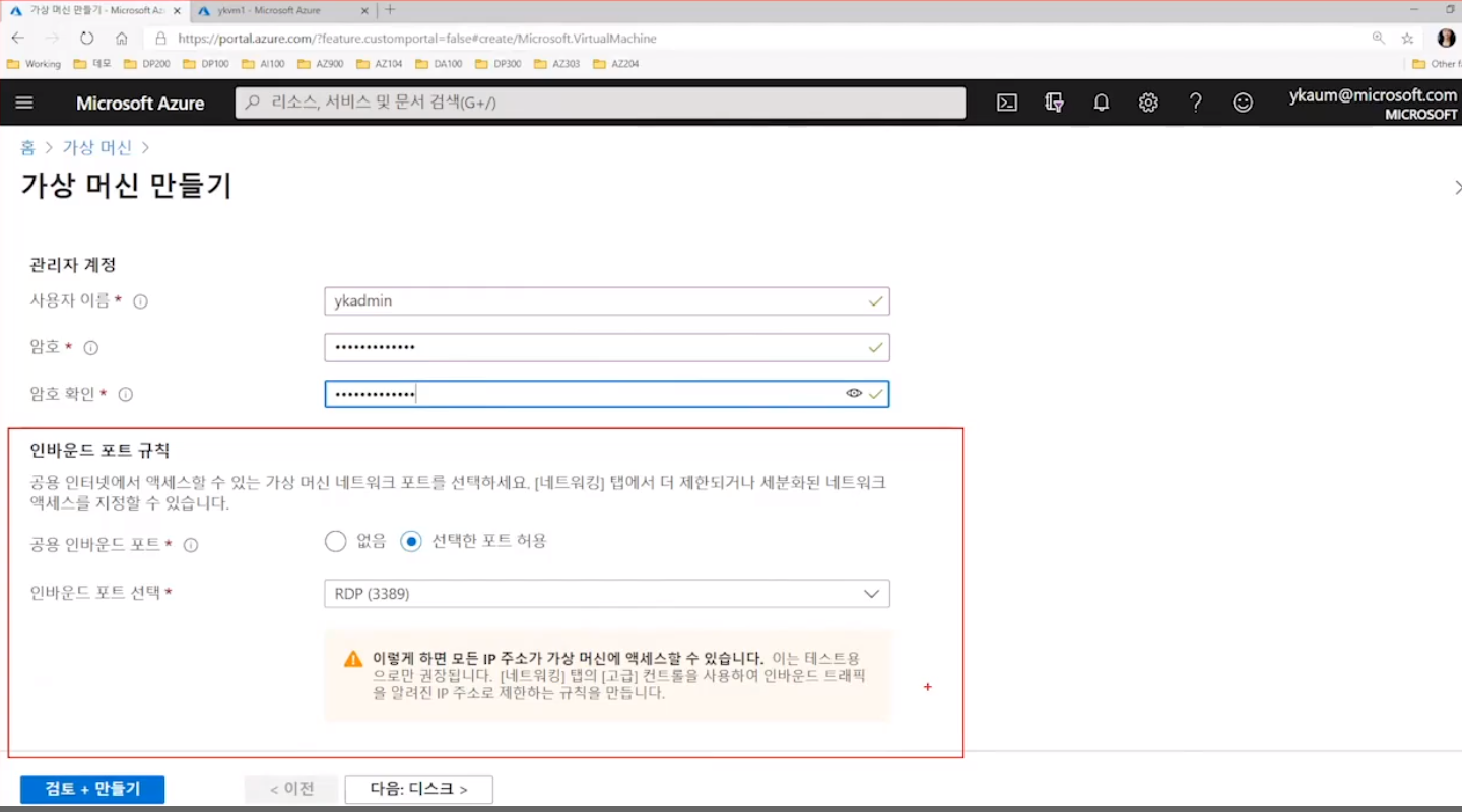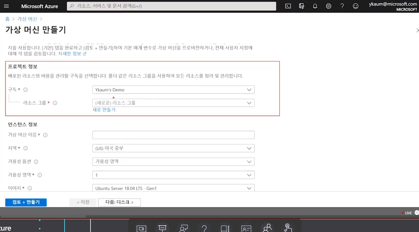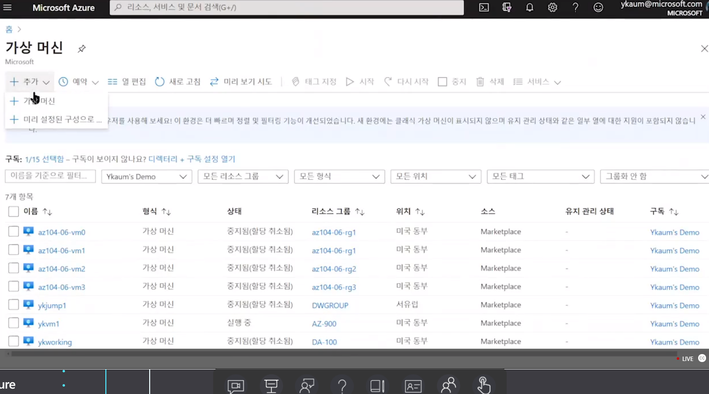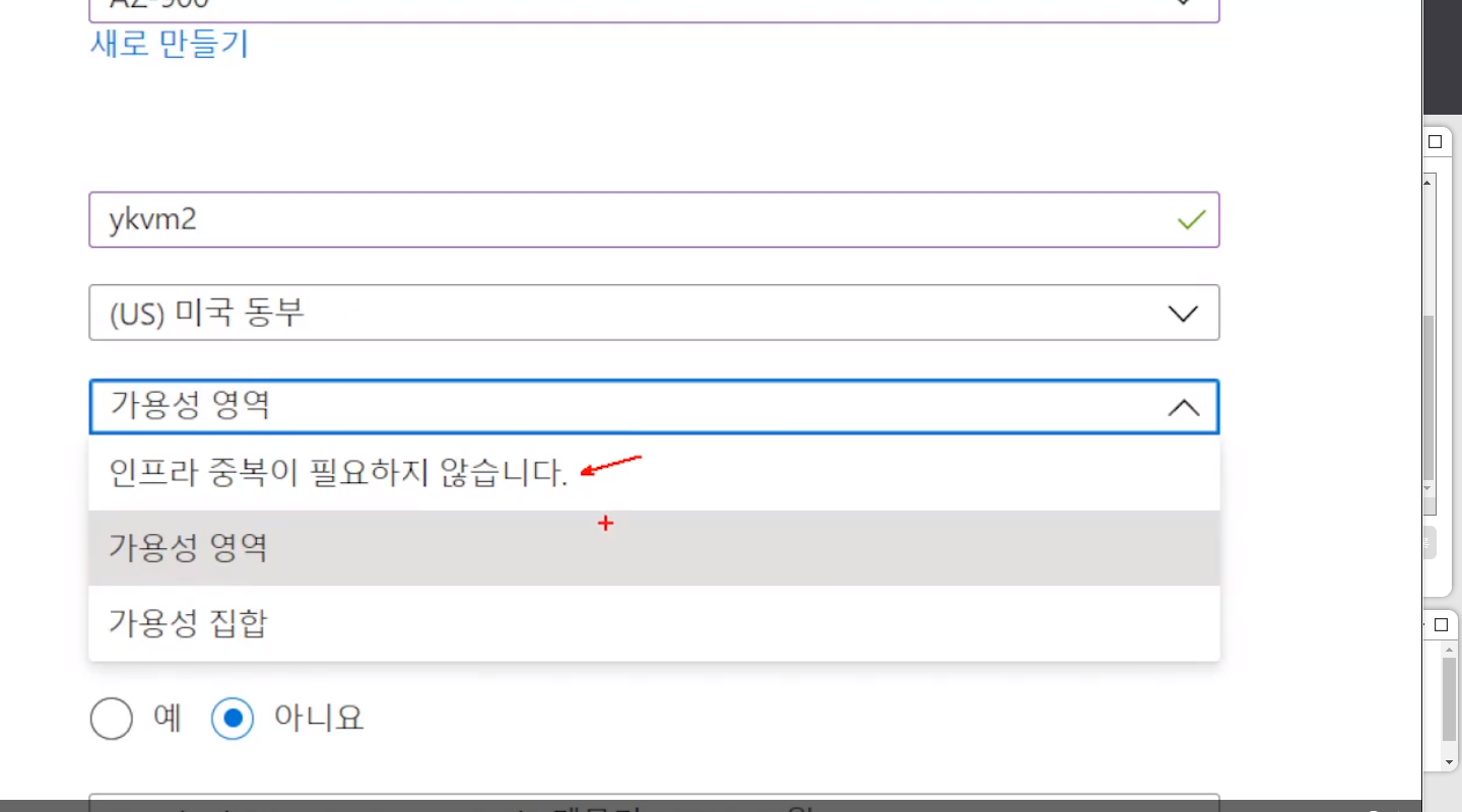 어느지역에 vm을 두고 싶나? 한국 중부 한국 남부에 둘수 있다 미국 동부나 여러지역을 선택할 수 있다.