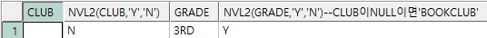 , NVL(CLUB, 'BOOK CLUB') --CLUB이 null 이면 'BOOK CLUB'